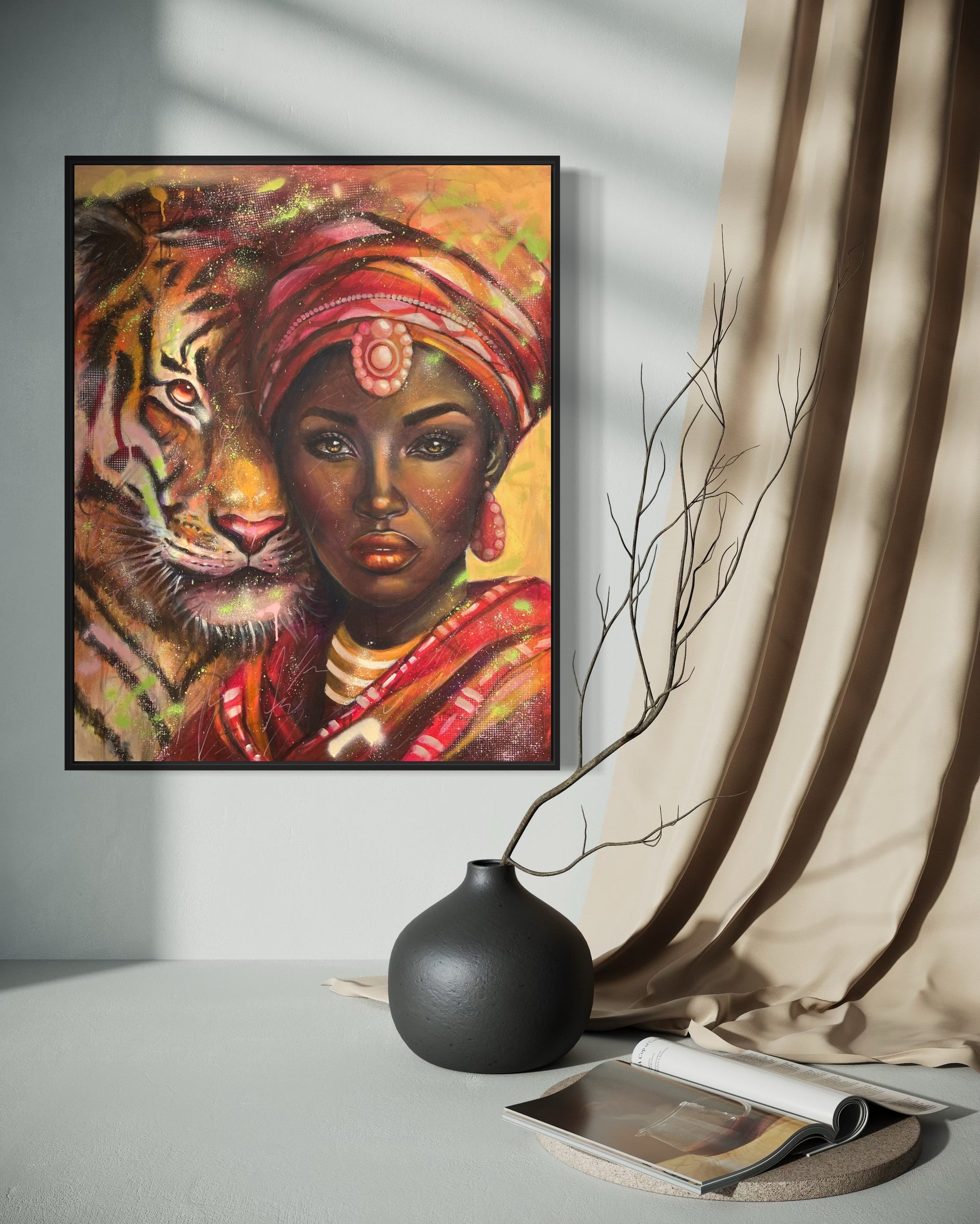 Empowering Afro Portrait of a Ugandan Woman with Tiger – Contemporary African Art